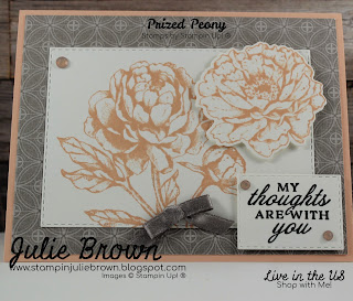 This is my second card in the Peony Garden Suite Series. This Suite lends itself well for a sympathy card. The flowers are so beautiful when stamped and the heartfelt sentiments express your support in times of loss. Any loss is difficult and sometimes we may not be able to be there to help heal the hearts of our friends and loved ones but a card can let them know we are thinking of them.