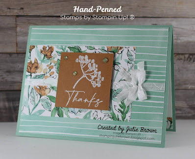 Today I am working with the Hand-Penned Suite by Stampin Up®. This suite includes the Hand-Penned Bundle (Stamp set and dies), Hand-Penned Designer Series Paper and the Genial Gems.