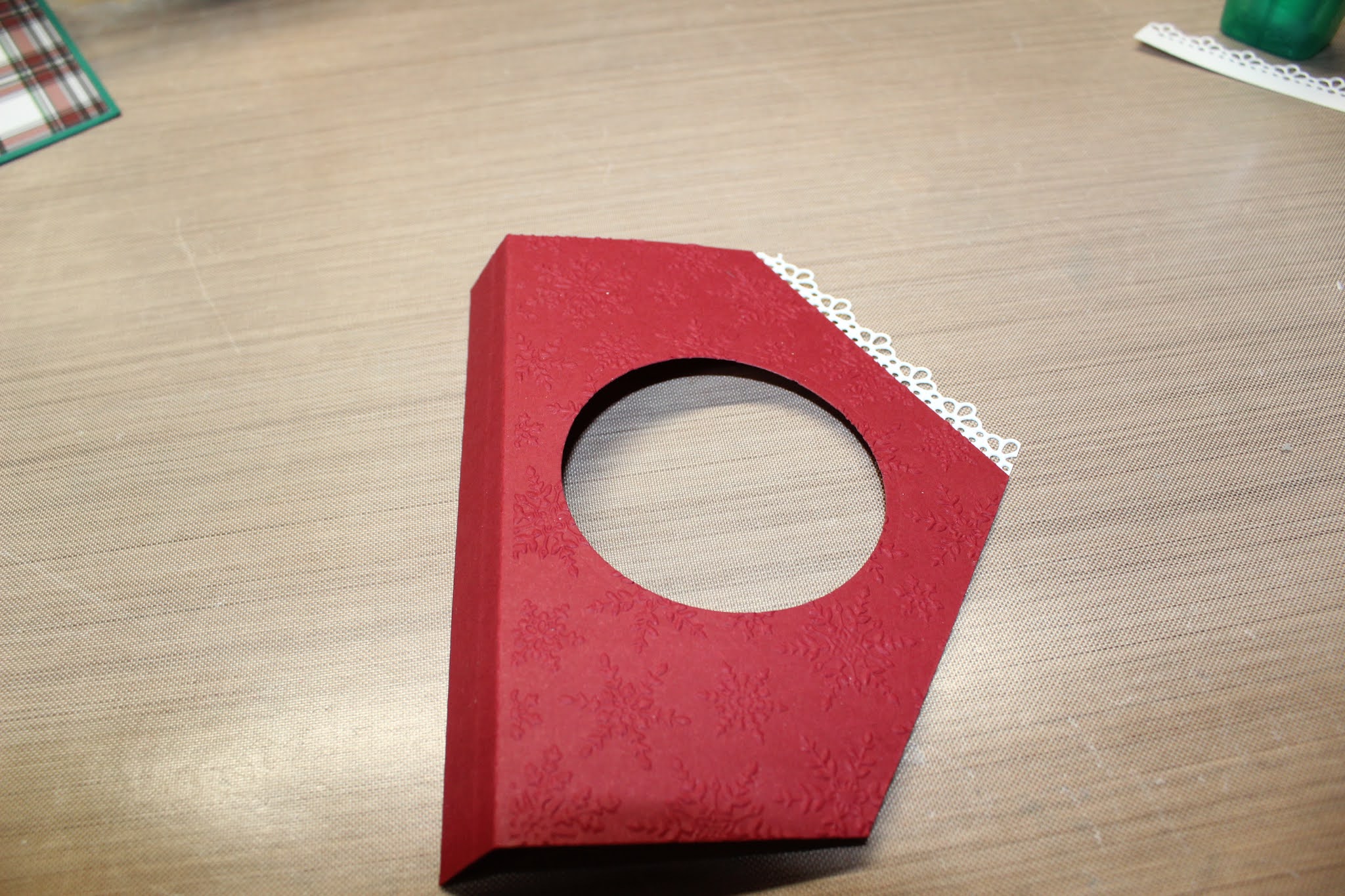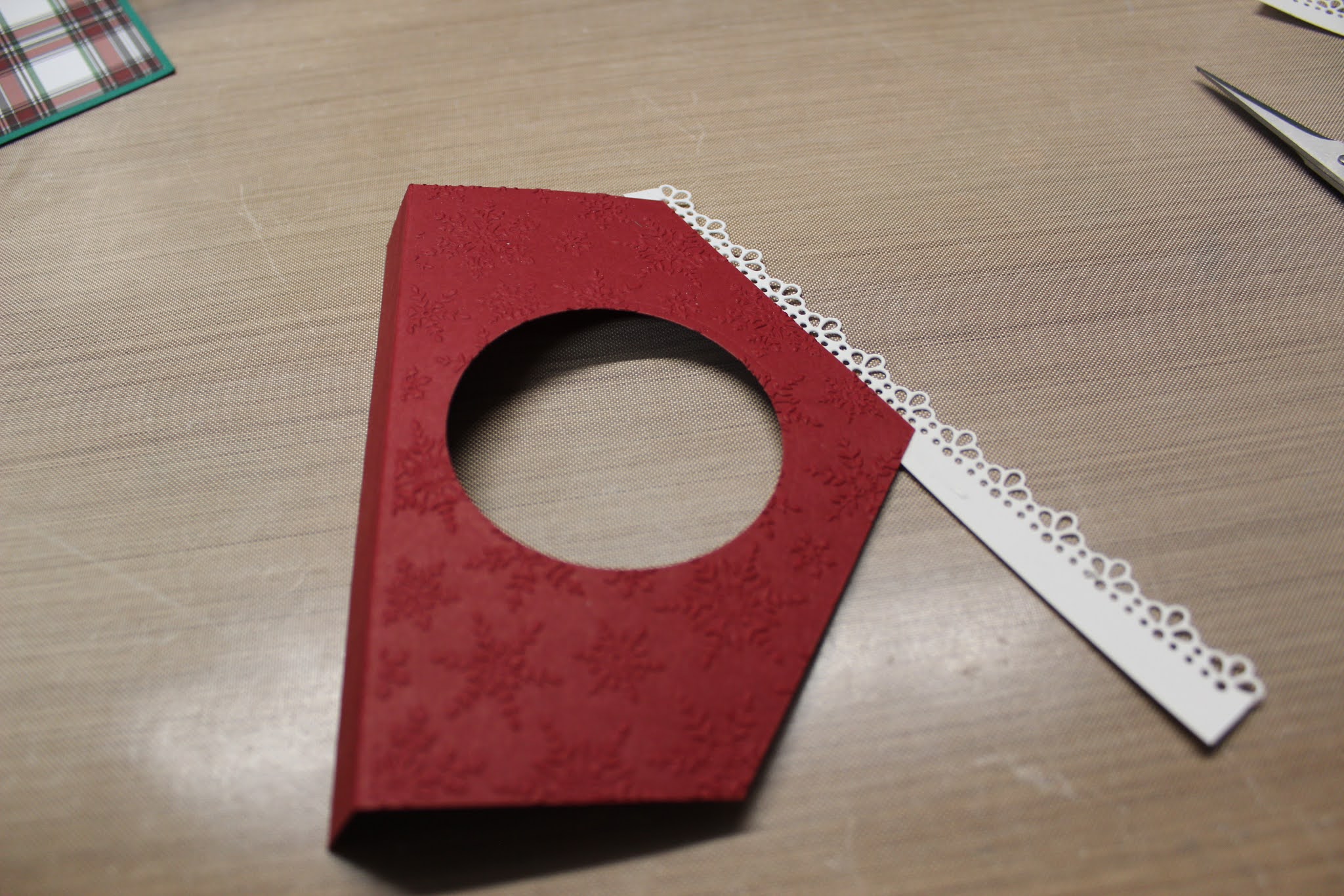 21. Using the Layering circle dies cut out a scalloped frame using the #1 scalloped circle die and the #3 straight circle die from the 4 x 4 WW piece.